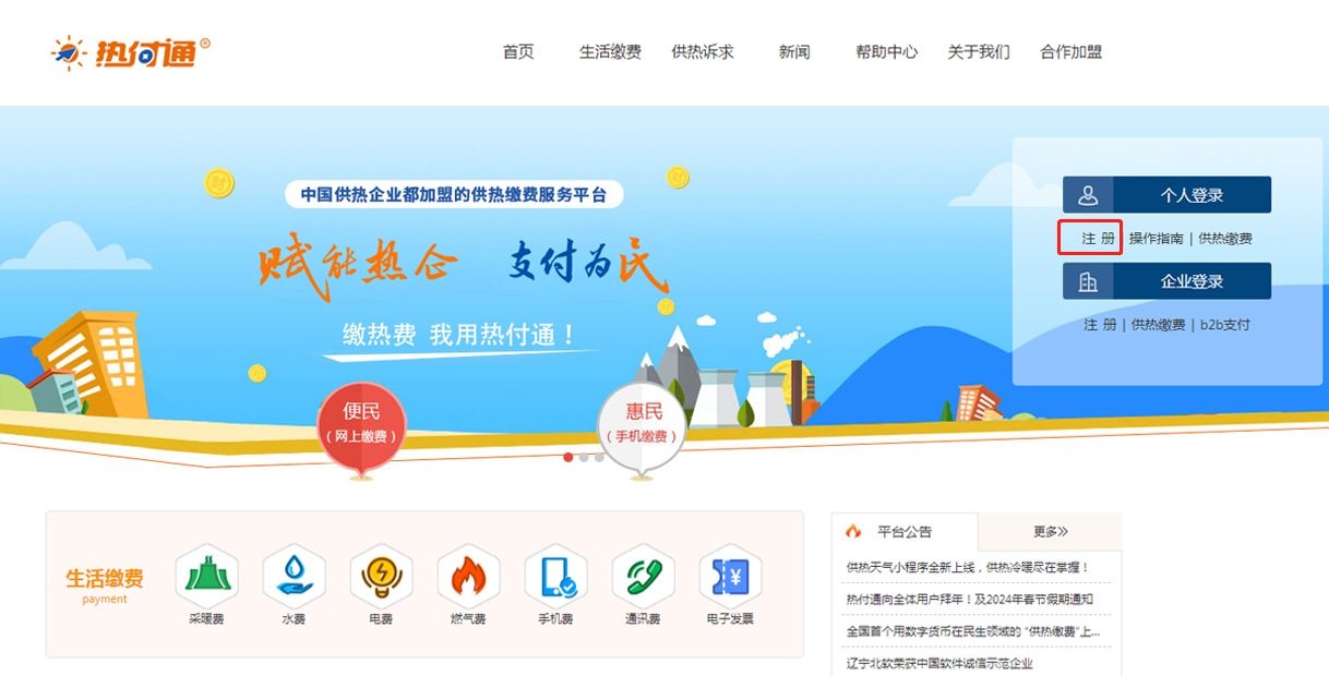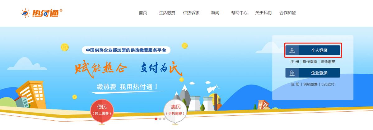 热付通用于个人 缴采暖费,个人不仅用于交缴采暖费,也可用于缴纳其他费用,例如:水、电、煤气、手机、通讯费。个人 缴费之前需要先注册账号成功后进行缴费。